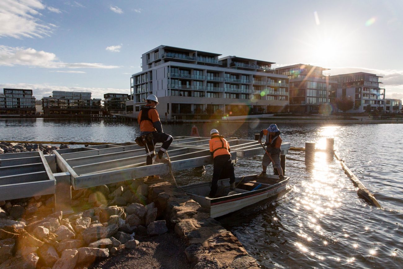 In 2020, our teams fabricated and installed the structural steel and Corten cladding for Kingston Foreshore’s newest jetty. The jetty completes the Sapphire Apartments development by BLOC on the eastern edge of the foreshore.