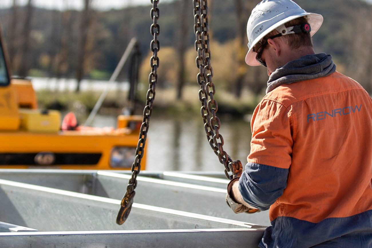 Working out of the boat and on-land, our team of riggers installed pre-assembled sections of the jetty seamlessly. The Corten cladding was then installed over our structural steel framing and will now patina with age, wear, and weather conditions specific to the site.
