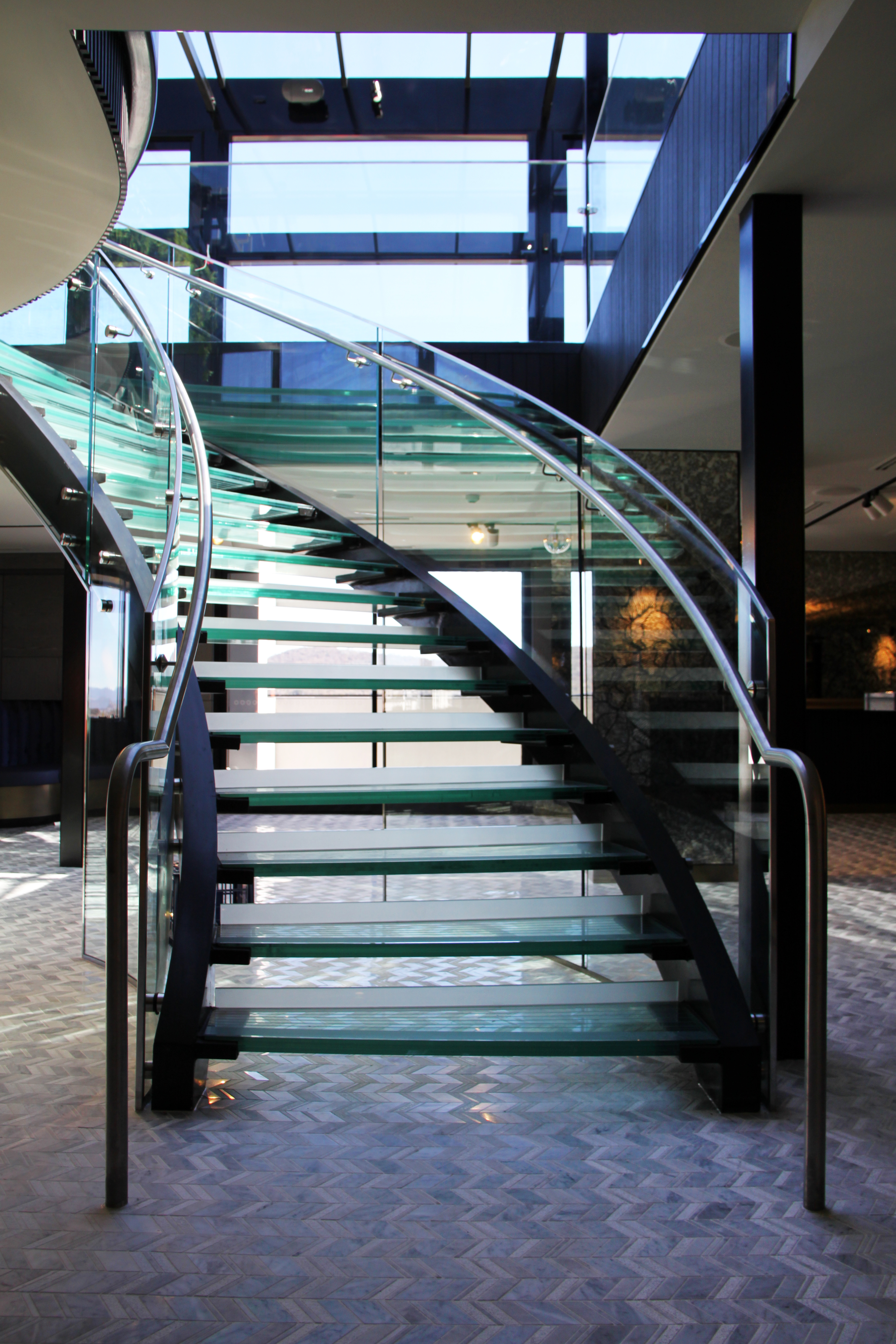 We had the pleasure of working with Bonmen to supply and install the structural steel and metalwork for The Howling Moon bar and restaurant at the Rex Hotel in Braddon. Our work there included the fabrication and installation of the curved stair stringers for the glazed stair to the rooftop bar, as well as the structural steel columns and rafters supporting the fully glazed roof.